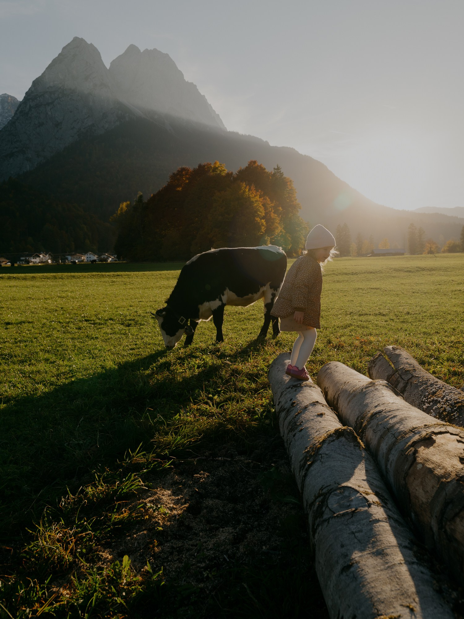 Olena followed me on social media and my works inspired her for family session in Bavarian Alps. I quickly found idea and location and we made it on very wonderful day in this soft and autumn light with maple trees, cows and mountains in the background. Final photos came out with rustic and cozy touch and I absolutely loved working with kids, so much fun!